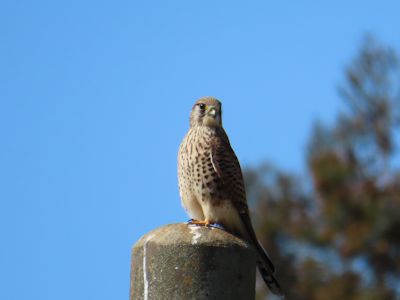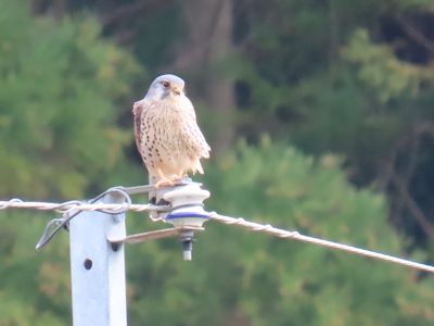途中の里山で、電柱の上にチョウゲンボウがいるのを見つけ、車を停めてそーっと近づき、撮影する。