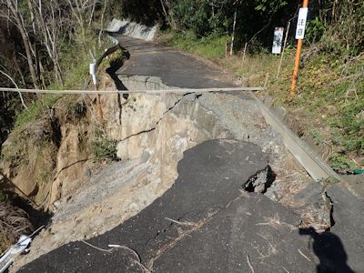 崩落している林道 (鹿児島県肝付町) |