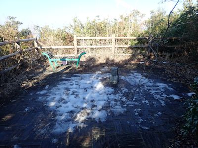 山頂は板張りに整備されていて、「愛のベンチ」、小さな祠がある。