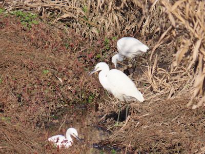 コサギは3羽いて、大きさが違っていたので、親子かもしれない。