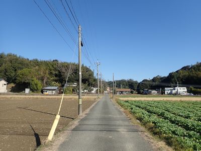 ようやく13時ごろ、錦江町半ヶ石集落に着き、ゆっくり走ってやっと「八山岳登山口」の看板が出ているのを見つけ、その細い道を入っていく。
