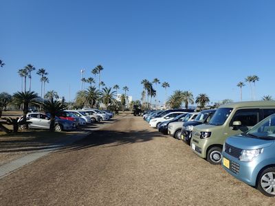 宮崎空港の芝生臨時駐車スペースは、さらに車が増えていた