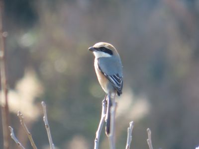 ジョウビタキのメスが見通しのいいいい枝に止まったが、三脚のカメラを構えて、ピントを合わせるためにシャッターを半押しした瞬間に飛び立ってしまった。
