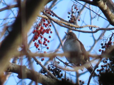ジョウビタキ(オス)、シロハラを視認。鳥の声は結構している。