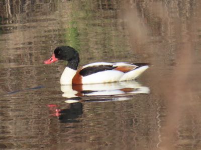 ツクシガモ。オスはくちばし基部にこぶがあるらしいので、