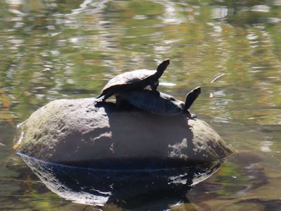 その後、図書館から歩いて、市内を流れる小川沿いを生き物観察する。