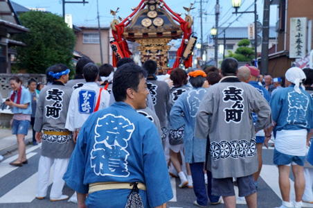 その後、久留里へ。今日は久留里夏祭りをやっている。久留里駅前のロータリーが出店広場と化し、多くの人で賑わっている。さらに横の広場には各地区の山車が4台並べられていて壮観だ。そして神輿が街のメインストリート、国道410号を練り歩く。外から見に来ている見物客は多くないが、きっと祭りなんていうのは、その土地の人たち自身が盛り上がり、楽しみ、地域の伝統や絆を再確認するためのものであろう。現に、神輿を担ぐ人、それを見る家族たち、老いも若きも、皆大いに楽しげだ。子供が神輿の担ぎ棒の上に座って、懸命にしがみついている。祭りの季節。