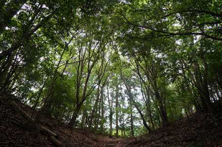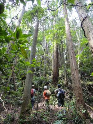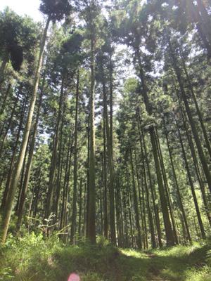 杉系の真っ直ぐな人工林の中を歩く。