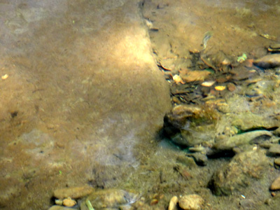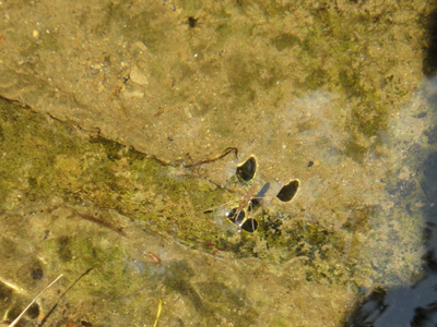 川底に不思議な影を作るアメンボ |