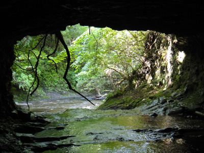 トンネルの上流側から滝の落口方向 ⇔ 上流側の大崖 |