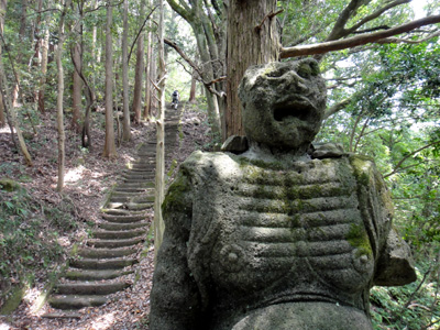 高宕観音下の不動像。石段がキツイ・・・。 |