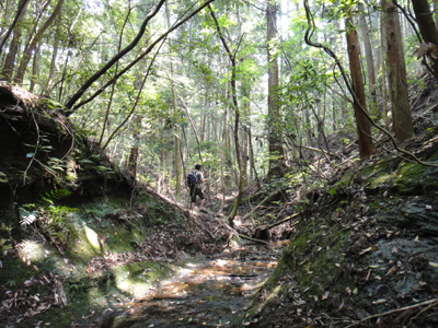 涸れ沢を登る ⇔ 沢がもう埋まっちゃってる |