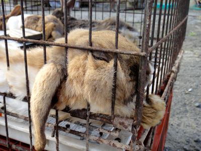 ポニーは僕らが近づくと、緩慢な動作でこちらに鼻面を向けてきた。元気がない。いや、ポニーとは大人しい動物なのでこれが普通なのだろうか。そしてウサギはかごの中で3匹がグッタリしている。ウサギマイスターの石坂が指摘する。