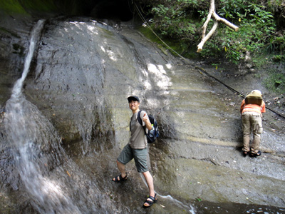 前回と同じく、すぐに黒滝に到達、そして急し滝。急し滝は滝に設置されているロープを使わずに登ろうと試みるが、滑るため途中で断念。もっとグリップする靴ならわけないのだが。他の3人も、ズルズルと滑り断念。みんなスポーツサンダルか普通の運動靴なのだから無理もないか。