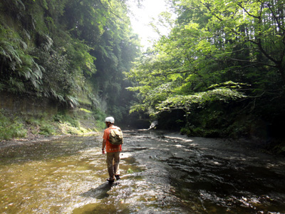 9:25入渓。水は程よく冷たい。空には晴れ間が出てきた。
