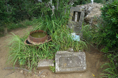 山頂で大変なことを発見する。ここに祭られていた地蔵さん(権現本尊?)がなくなっているのだ。何ということだ。今月7月1日に僕がここに来たときには確かにあった。誰かが盗んだのだろうか。それとも地震でどこかに落ちてしまったのか。それともどこかで移動祈願でもされているのか???分からん。大いなる謎だ、
