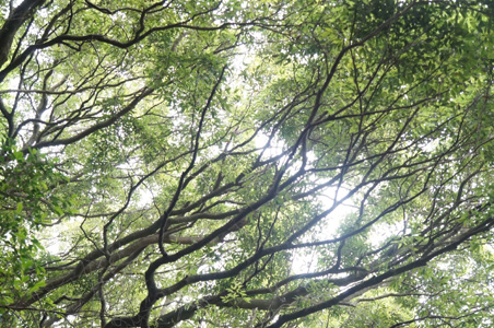 眼下の森のいたるところから鳥の声が上がってくる。この辺りは、野鳥観察スポットでもあるそうだ。