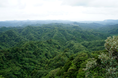 360度、見渡す限りの樹海。緑に埋め尽くされた房総の低い山並みが延々と続く。今まで毎週のように深い森の下にえぐられた谷底を歩き、高い空に突き上げる梢を見上げてきたが、今日はそれを上から見下ろしている。今まで世界中で色んなものを見てきた僕でも、この景色に驚愕し、他に誰もいないので、思わず「ウオォー」と声を上げてしまった(笑)。わずか標高330mの山頂でこんな視界が広がっていようとは。この眺望の素晴らしさは、山の価値が高さで決まるのではないことを僕らに教えてくれる。この眺望をもってすれば、「千葉の名峰」と言っても決して過言ではない。「日本百名山」になぜこの高宕山が入っていないのかが不思議だ(笑)。やはり世界遺産だの日本百名山(二百?三百?)だの百名城だの百名水だの百名瀑だの百名湯だのというのは、あまり意味のないものだということが再認識できる。他にも素晴らしいものはいくらでもあるのに、それだけを崇め奉る風潮がいかに馬鹿げているか。何で100に限定するのか?観光業界人の策士の仕業か。「肩書」というものに盲目的に弱い人間の性(さが)を巧みに利用している。自然物や人工物の「優劣」なんて、何を基準に決めるのよ?そんなの誰かの勝手な主観に過ぎない。まぁ、旅のきっかけを与えてくれる、という点では否定するものではありませんがね。