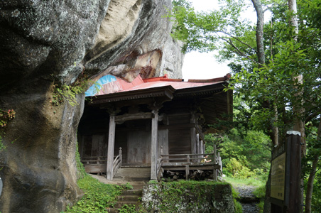高宕観音の観音堂。岩を削って建てられている |