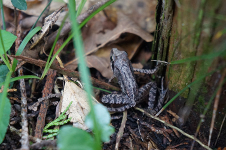カエルも結構見かける。彼らは、山の中を跳び回っている。山の中だからか、茶色やグレー系の色をしている。