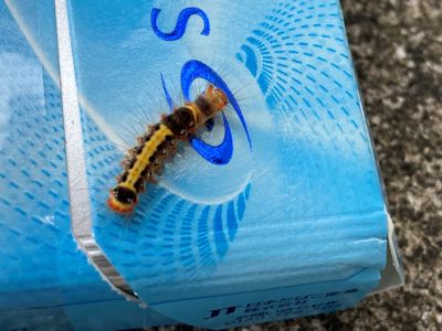 何の幼虫だろうか。ケムシ図鑑も欲しい。