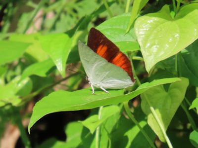 家で図鑑で調べたら、ウラギンシジミというチョウのオスだった。