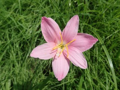 ヒメヒオウギズイセンのオレンジ色の花が咲いている。もう盛りを過ぎている感じだ。