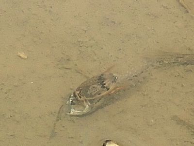 田んぼの中でオタマジャクシを捕食するハイイロゲンゴロウ