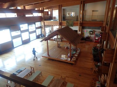 梼原町の町役場内部。広々とした吹き抜けに、茶屋を模した