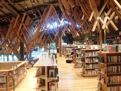 梼原町の「雲の上の図書館」内部。隈研吾氏の建築。