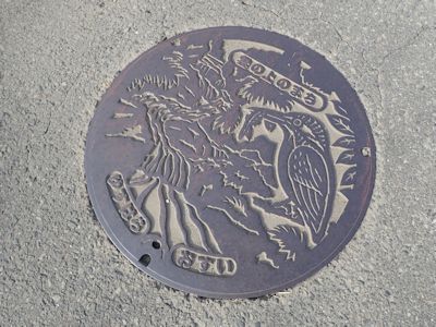 梼原町越知面地区のマンホールには、カワセミが描かれている