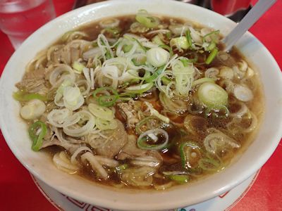 出て来たのはこってりラーメン。スープの味は濃い。しょうゆベースか。ネギ入れ放題。ま、それほどめちゃくちゃ美味いというほどのラーメンでもない。
