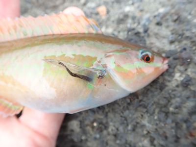 余談だが、ベラにはまたまた寄生虫がついていた。胸ビレの付け根に、ヒルのような尺取り虫のような、見るからに気持ち悪い線状虫が蠢いていた。ベラは寄生虫に寄生されやすい魚なのだろうか。