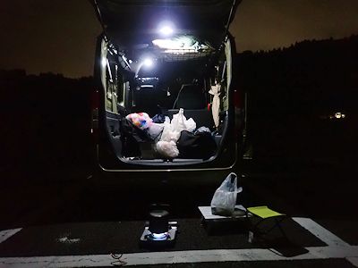 釣りから帰った夜、小中池の駐車場で自炊する |