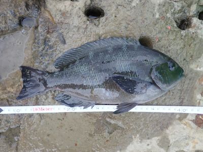 釣り始めてすぐにメジナ29cm。こりゃ幸先いい。しかし・・・ |