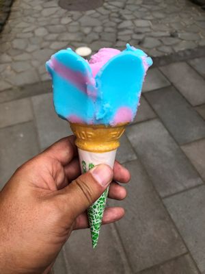 いまは青が入った特別バージョンらしく、花の形をしたアイスは見た目も楽しませてくれる。