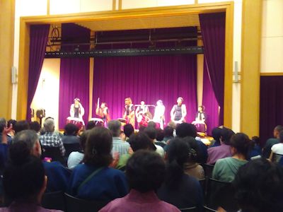 始めは男性陣がなまはげ面を被って、大迫力のなまはげ太鼓。その後は面を脱ぎ、和太鼓のオリジナル曲を演奏。なかなか良い。