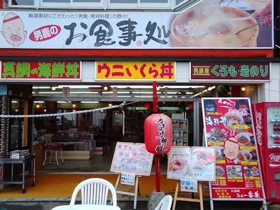 いくつかの店は閉店してしまっていて、途中で賑やかさが途切れる。一番奥に開店している店があるので行ってみると、ほとんど客が来ていない。客は、灯台近くの手前の店店まで来て、一番奥のこの店までは来ないのだ。