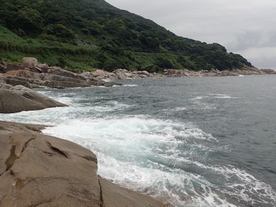 午後4時半、雨が弱まったので磯に降りる。最近連続して行っていた黒崎近くの急斜面の磯ではなく、初めに通っていたもっと西側の降りやすい磯。
