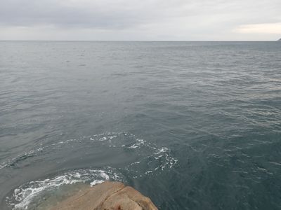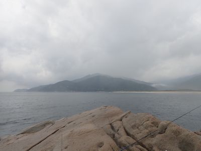 磯には誰もいない。こんな天気じゃ誰も釣りしていない。