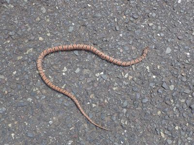 道に、ジムグリ(多分)の死体があった。あまり見ないヘビだ