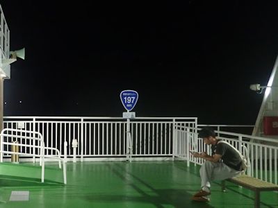 という前提なので、フェリー甲板上に国道197号の道路標識がある