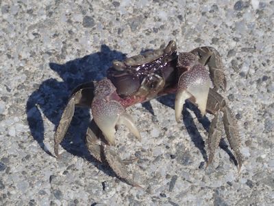 クロベンケイガニ(多分)がアスファルトの道路に出ていた