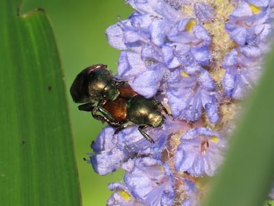 マメコガネは、かなりの確率で交尾しているところを見かける