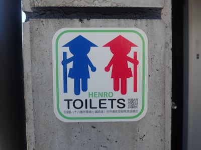 宿毛市の公衆トイレには、遍路マークが掲示されている