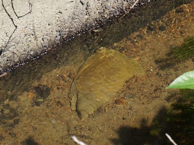 30cmくらいのスッポンが田んぼの水路にいた。野生のスッポン