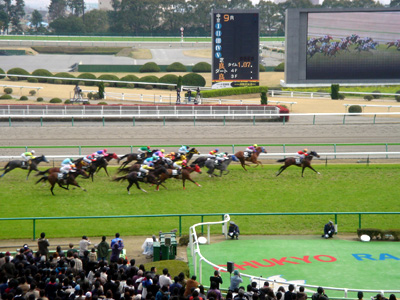 さすがに眠い。作ってきたサンドイッチを食べる。中京競馬場に電話してみると、今日はGTデーなので、もう開いている駐車場があるという。他の駐車場も6時半か7時には開くとのこと。サンドイッチを食べ終わって僕は最後の死力を振り絞って再びハンドルを握る。郡山を出てから7時間半。目指した豊明ICを降りる。ETC出口で、「料金は、センエンです」と機械に言われたとき、初めて、ここまでがんばってきて報われた、という気がしてくる。国道で中京競馬場に到着したのは、朝7時頃。中京競馬場改修前の開催最終日、さらにはGTデーというだけあって、まだ7時だというのにもう人々は集結しつつある。人波が駅方面から競馬場へ続いている。もちろん、朝の通勤ラッシュとは景色が違う。スーツ姿のこぎれいな身なりの人間はいない。なぜか賭博師のオヤジたちは、小汚いヨレヨレのジャンパーを着ていることが多い。服装がどうかなどは頭の中にない、頭の中にあるのはいかにして金を増やすか、だけ。そのためだけに脳をフル回転させる。そんな人間たちのうねりだ。駐車場も大分奥の方まで埋まっている。僕は一睡もしていないので、駐車場に車を入れた後、車の中で仮眠を取ることにする。