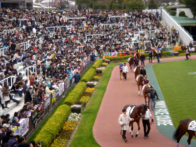 午後になり、メインレースが近づいてくる。今日の中京のメインは、11レース、GTの高松宮記念である。JRAでは中央場所(中山、東京、阪神、京都)以外で行われる、唯一のGTレースである。午後になると観客がさらに押し寄せてきて、パドックも観客席も人で膨れ上がってくる。GTデーの興奮が、刻一刻と高まってくるのが分かる。