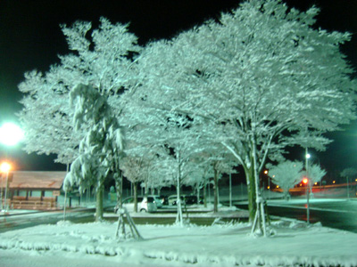 しばらくして疲れたので妙高サービスエリアで休憩する。午前2時20分。自販機のホットコーヒーを飲み、震えながらタバコを一服。寒い。雪がうずたかく積もっている。駐車場に植えられている木々が、樹氷となっている。