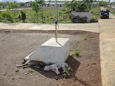 暑すぎて日陰で眠る野良犬たち(カレン州パアンの職業訓練校にて) |